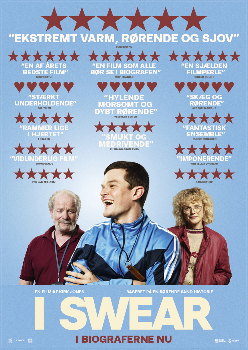 ’I Swear’ er baseret på den sande historie om John Davidson, der vokser op i 1980’ernes Skotland. Som teenager er han populær, målmand på fodboldholdet og fuld af selvtillid – indtil han diagnosticeres med Tourettes syndrom. Nu må han finde sin egen vej i en hverdag, hvor hans tics og voldsomme udbrud både skaber kaos og komiske øjeblikke. Heldigvis finder John støtte hos nye venner, der tager imod ham med åbne arme og værdsætter hans mange kreative bandeord. John indser, at omverdenens uvidenhed er et større problem end selve diagnosen – og det bliver hans mission: At udbrede viden, forståelse og accept.